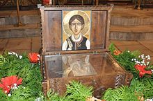 Овој македонски светител пострада од Агарјаните во 1727 година. Како што пишува на кивотот во кој денес во Бигорскиот манастир се чува неговата чесна глава, во тој период од нивното петвековно владеење со македонските краишта Агарјаните имале необичен и свиреп обичај за време на тридневното празнување на Бајрам насилно да го преведат во својата исламска вера секој христијанин што ќе го нашле. Во страв и трепет пред нивниот незадржлив гнев незаштитените и угнетени христијани се сокривале кој како умеел и можел. Раката на друговерните гонители пак, секогаш успевала да докачи по некоја нејака жртва и да го изврши злото над невиниот човек. Мнозина од уловените македонски христијани гонителите ги наоѓале неподготвени да појдат на маченички подвиг и исходот на спасението на оние што го примале исламот под тешка закана останувал неизвесен. Но Бог разгоре љубов кај Својот храбар следбеник Агатангел, кој реши да се дрзне, та со помош Божја да му стави крај на нечесното затирање на кревките и неопитни души. Поттикнат од благодатта Божја, свети Агатангел појде во царскиот сарај и со богомудри зборови пред турските големци се заложи тоа насилно исламизирање на невините христијани на Бајрам да запре. Со содејство Божјо светителот успеа да најде милост пред агарјанските првенци и тие, според ферманот приготвен за таа добра намера, го укинаа гонењето на христијаните на Бајрам. Но Бог, за да ја открие вистинската верност на Својот ревнител Агатангел им допушти на неколкумина Агарјани во Битола да му се нафрлат на светиот маж и да го погубат. А свети Агатангел чесно пострада од нив, простум примајќи го својот небесен венец од Христа, Кому Му поверува: „Секој што ќе Ме признае Мене пред луѓето, ќе го признаам и Јас него пред Мојот Отец небесен. А кој се одрече од Мене пред луѓето, и Јас ќе се одречам од него пред Мојот Отец небесен.” (Мат. 29 – 33)