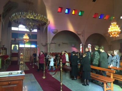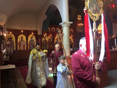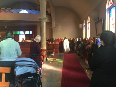 На 23. 04. 2017 година, во Втората недела на Воскресение (Томина недела), кога го празнуваме споменот на светите маченици Теренциј, Африкан, Максим, Помпиј и останатите триесет и шестмина со нив; Свети шест илјади маченици во Грузија, во црковната општина „Свети Георгиј и Пресвета Богородица“ во Епинг, старешината на храмот, јереј Климент Станковски служеше Света Златоустова Литургија.