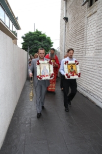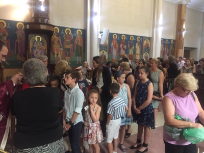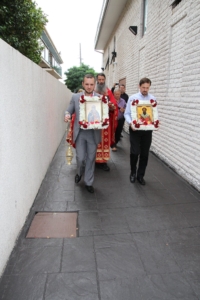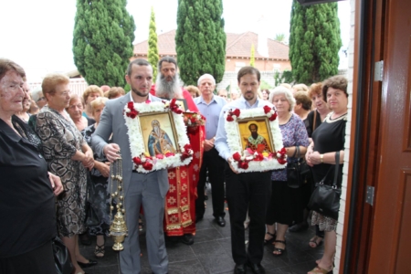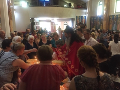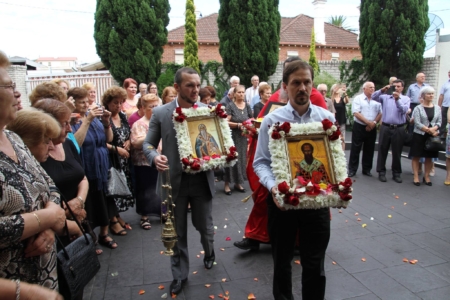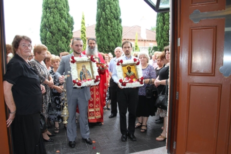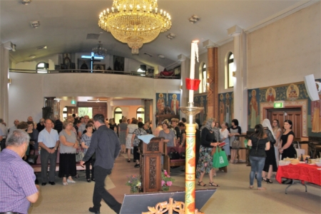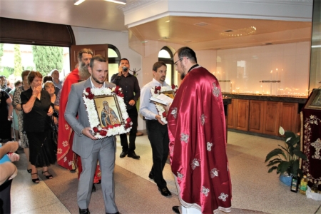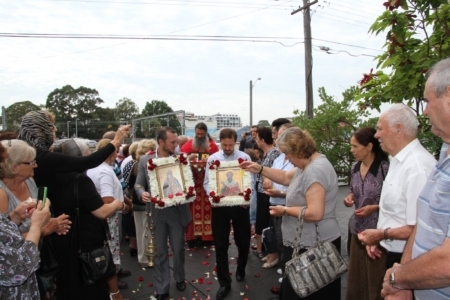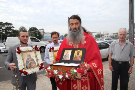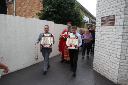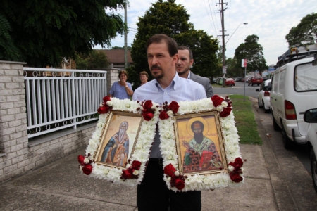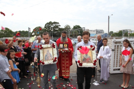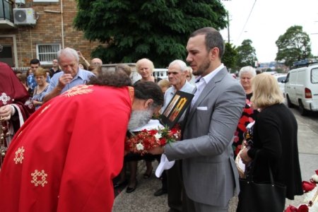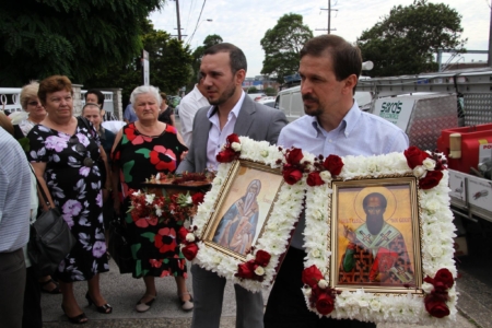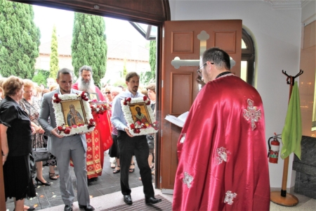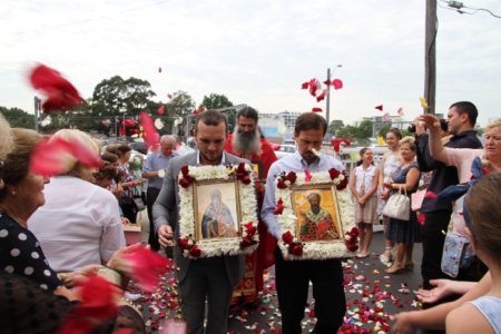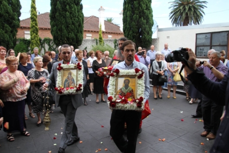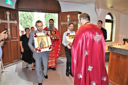 Свештенството заедно со верниот народ пред почетокот на Литургијата свечено ги пречекаа светите нетлени мошти од свети Игнатиј Богоносец и на свети Василиј Велики, кои ги испрати сестра Илијана (Илкова), игуманија на Марковиот манастир од Македонија, за добриот прием, кој го имаше пред неколку месеци кога беше во посета на Сиднеј.