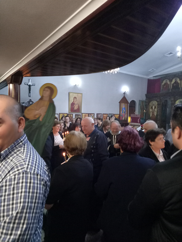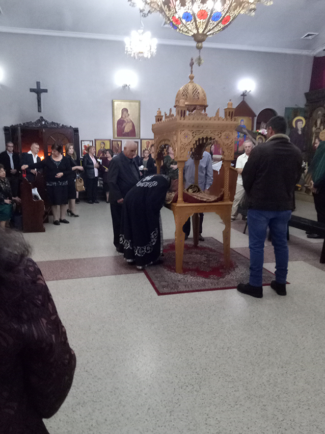 На 14. 04. 2017 година, во навечерието на светата и Велика Сабота од Страсната седмица, во црковната општина „Свети Никола“ во Кабрамата, старешината на храмот, протојереј – ставрофор Ѓорѓија Лапоски отслужи Утрена богослужба на која, пред гробот и Христовата плаштаница, беа испеани Статиите на Оплакувањето Христово.