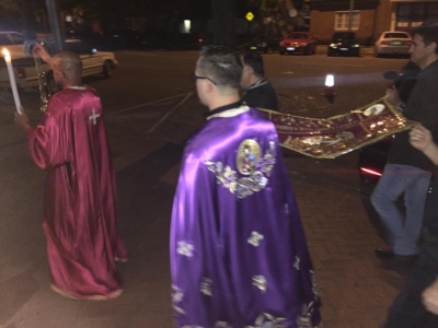 По литијата и трикратниот опход околу храмот, верниот народ поклонувајќи се ја целива плаштаницата и ги возвеличи Христовите страдања и доброволното погребение.