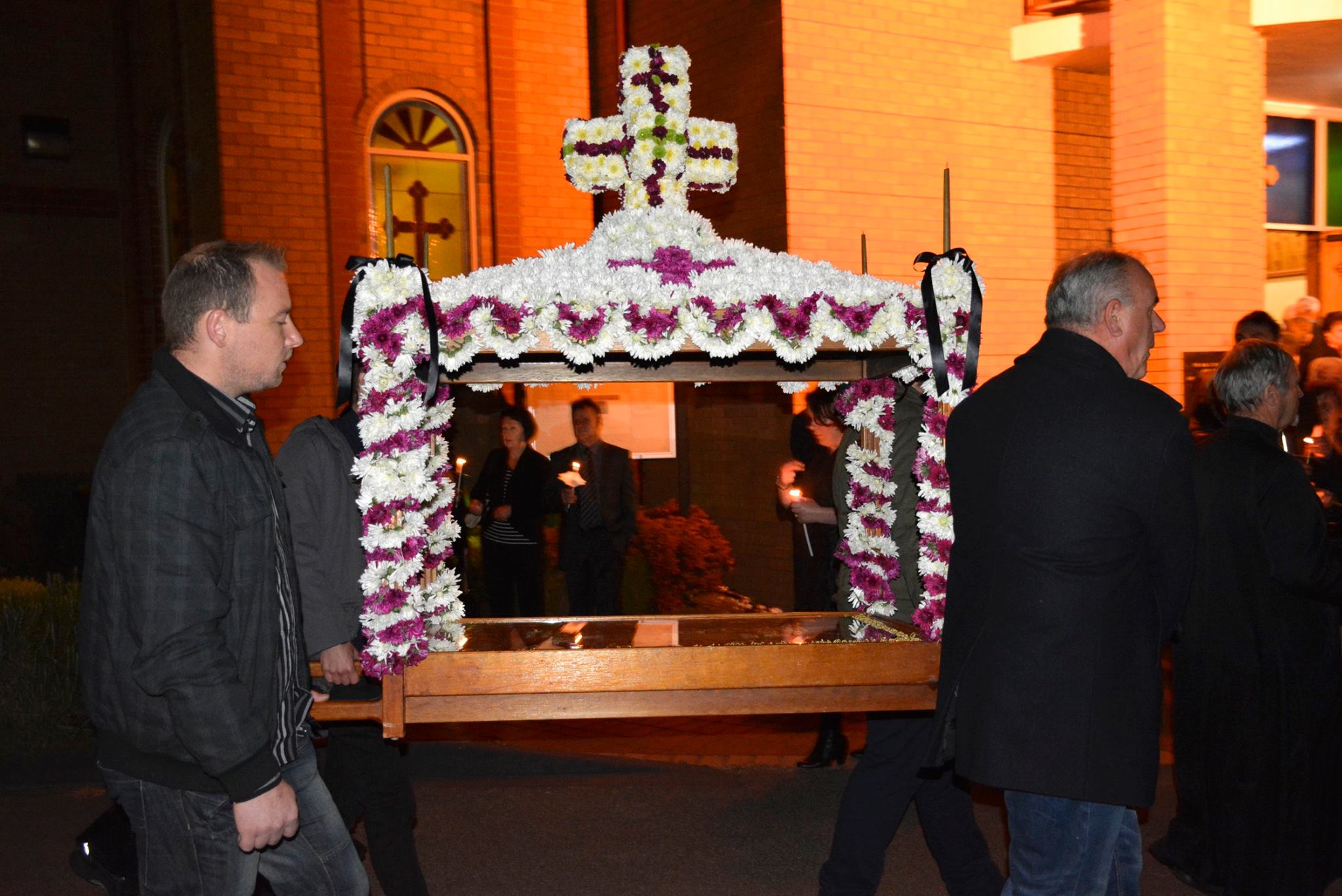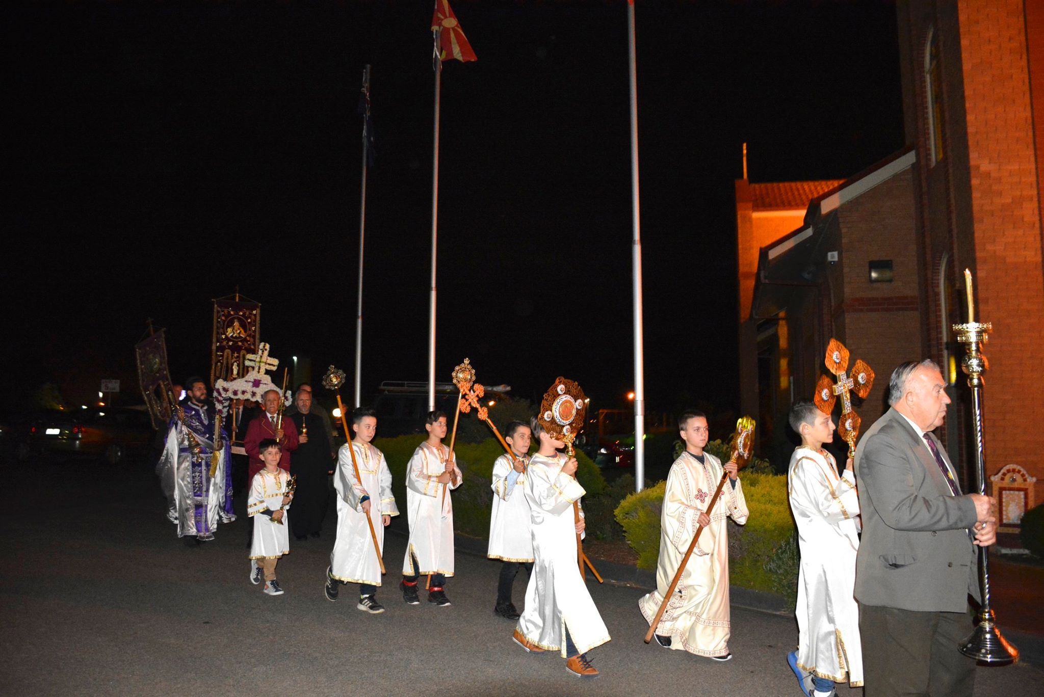 На 14. 04. 2017 година, во навечерието на светата и Велика Сабота од Страсната седмица, во црковната општина „Свети Георгиј и Пресвета Богородица“ во Епинг, старешината на храмот, јереј Климент Станковски отслужи Утрена богослужба на која, пред гробот и Христовата плаштаница, беа испеани Статиите на Оплакувањето Христово.