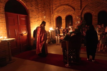 На 05. 04. 2018 година, во Светиот и Велики четврток од Страсната седмица, во манастирот „Свети Климент Охридски“ во Кинг Лејк, архимандритот Гаврил (Галев) отслужи утрена богослужба со читање на 12 евангелија за Христовите страдања и го изнесе Распетието Христово.