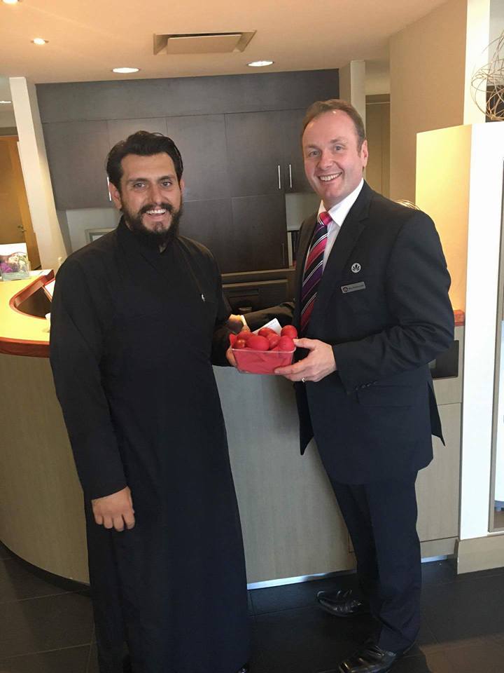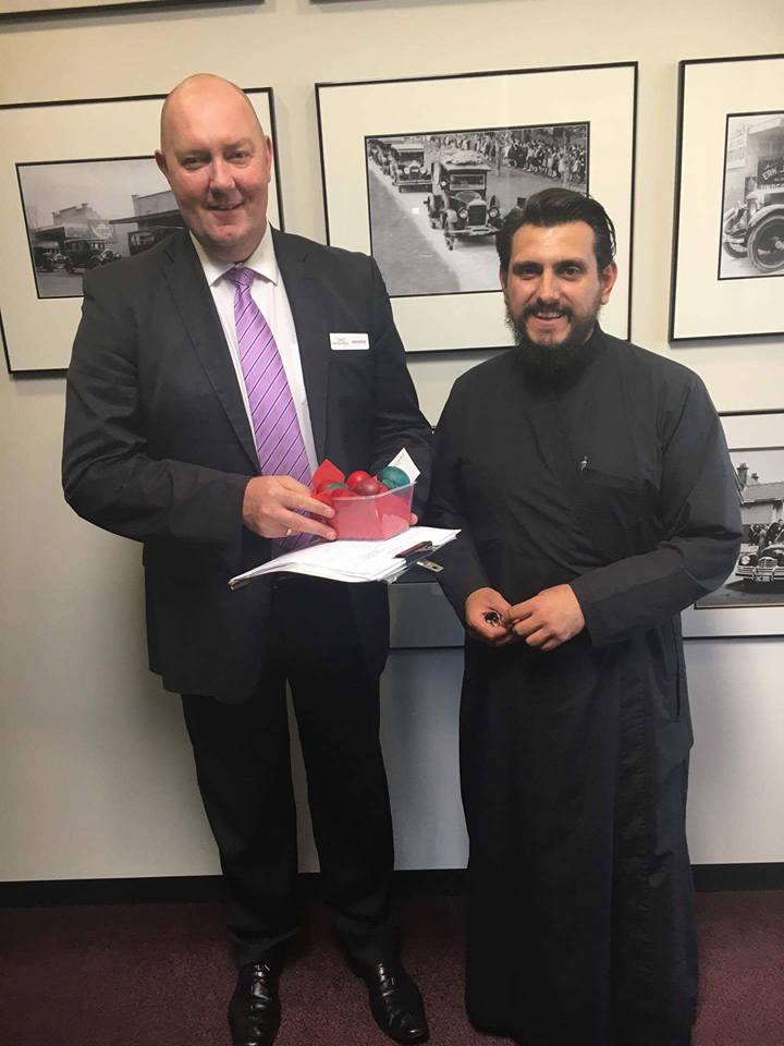 На 18. 04. 2017 година (вторник од Светлата седмица), старешината на храмот „Свети Георгиј и Пресвета Богородица“ во Епинг, јерејот Климент Станковски по повод Велигденските празници го посети македонскиот народ во старските домови, како и претставниците на македонскиот бизнис и им го честита празникот Воскресение Христово – Велигден.