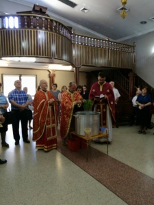На 18. 01. 2018, кога Светата Црква го празнува празникот +Водокрст и споменот на Преподобната мајка Синклитикија; Светиот свештеномаченик Теопемт и маченикот Теона; Светиот пророк Михеј I; Преподобна Аполинарија, во црковната општина „Свети Никола“ во Кабрамата, протојереј-ставрофор Ѓоргија Лапоски во сослужение на протојереј Александар Ивановски и на старешината на храмот, презвитерот Игор Младеновски, служеше Царски часови и Света Василиева Литургија.