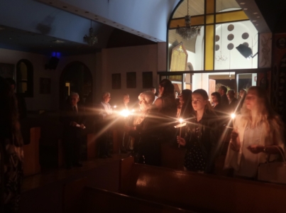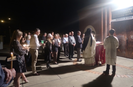 На 08. 04. 2018 година, во црковната општина „Свети Наум Охридски“ во Аделаид, архимандритот Гаврил (Галев) го објави светлото Христово Воскресение и служеше Света Златоустова Литургија.