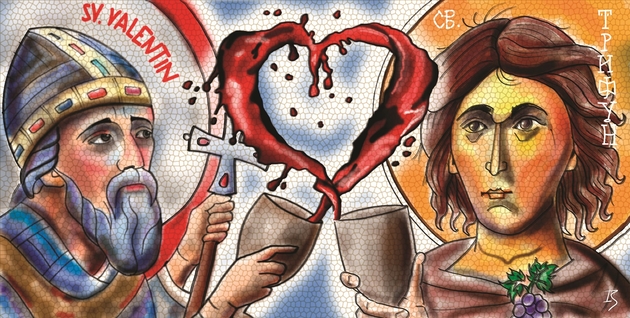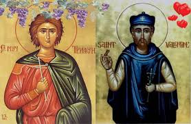 На овој ден Светата Православна Црква го чествува и празникот на светиот маченик Трифун кај нас познат и како заштитник на лозарите бидејќи овој ден по традиција лозарите ги закројуваат своите лозја. Традицијата со закројувањето само по себе не е лоша бидејќи од светителот се бара молитвено застапништво за побогат род, она што е лошо и што ја растажува целата Црква е тоа што на овој маченик му се дава еден крајно недоличен епитет, кој ни не смееме да помислиме да му го дадеме на било кој човек, а најмалку на светител кој се моли за ситенас. Навистина срамо е да го нарекуваме пијаница. Никаде и во ниту едно житие не е напишано дека светиот Трифун пиел алкохол, а камоли да се опива. Кој пијаница влегол во Царството небесно? Но, не се задоволуваме само со тоа што погрдно го именуваме светителот, туку и го славиме на недоличен начин – односно на тој ден, во име на светиот Трифун се собираме на седенки и пиеме вино до бессвет мислејќи дека му угодуваме на Божјиот угодник. Ќе речам дека сме полоши од многубошците кои се пијанчеле за време на празниците бидејќи тие не знаеле за Христос и за Неговата спасоносна наука, а ние се удираме во гради дека сме Христови и Му служиме Нему а стануваме многу полоши од нив! Ние сме повикани да пиеме вино, но не за телесно задоволство, туку да го пиеме виното и да го јадеме лебот кои благословени од свештеникот за време на Литургијата се претвораат во вистинско Тело и Крв Христови. Но, нам полесно ни е да се собереме на седенки, да празнословуваме и да се опиваме отколку да појдеме да земеме учество и да се помолиме на Светата Литургија, или полесно ни е да навратиме до најблискиот gift shop и да подариме нешто на денот на светиот Валентин отколку да се помолиме во храмот и по молитвите на светителот Бог да ни дари љубов, но не љубов телесна, туку љубов кон нашиот Создател, љубов братска, љубов кон нашите пријатели и нашите непријатели.
