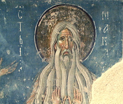 По извесно време настапил денот на споменот на еден светител, во чест на кого, по обичајот на своите родители, и Макариј сакал да подготви прослава. Тој подготвил ручек, кој бил наменет не толку за неговите соседи, колку за сиромашните и несреќните. Присутвувајќи тој ден на црковната богослужба, тој видел еден чесен старец – монах, како влегол во храмот. Монахот имал долга бела коса и брада, која му достигала речиси до половината; лицето му било бледо од долгиот пост, целиот неговиот изглед бил благолепен, бидејќи и неговиот внатрешен духовен лик бил украсен од убавината на добродетелите. Старецот живеел недалеку од селото Птинапор, на едно пусто место, каде што имал отшелничка ќелија. Тој никогаш и на никого не се покажувал, само во тој ден, по Божјо устроение, дошол во црквата што се наоѓала во селото, за да се причести со пречистите Христови Тајни.