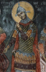Кога царот Декиј еднаш војуваше против варварите, во неговата војска имаше еден војвода над ерменскиот полк наречен Мартензес. Тој војвода се викаше Меркуриј. Во борбата на Меркуриј му се јави ангел Божји, му даде меч во рацете и му рече дека тој ќе ги победи непријателите. И навистина, Меркуриј покажа чудо од храброст косејќи ги непријателите како трева. По оваа славна победа царот Декиј го произведе за прв војвода во својата војска. Но некои завидливи луѓе го обвинија Меркуриј дека е христијанин, а тој ова пред царот не го скри туку го објави. Беше мачен долго и тешко: од него со ножеви сечеа каиши, го гореа со оган. Но во затворот му се јави ангел Божји и го исцели. Најпосле царот изрече пресуда војводата Меркуриј да се убие со меч во Кападокија. Кога го убија телото му стана бело како снег и од него излегуваше мирис на темјан. Од неговите чудотворни мошти се исцелија многумина болни. Овој прекрасен Христов војник пострада меѓу 251 и 259 година.