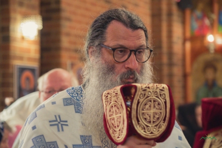 На 12. 01. 2025, во 29 недела по Педесетница – Недела по Рождество Христово (Попразненство на Божиќ , кога Светата Црква ги прославува Светите богооци: Св. цар Давид, Св. праведен Јосиф и Светиот апостол Јаков брат Господов, како и споменот на нашиот преподобен отец Гаврил, епископ Велички; во манастирот „Свети Климент Охридски“ во Кинг Лејк, игуменот на манастирот, отецот Гаврил (Галев) во сослужение на протојереј-ставрофор Јован Димиров и на протојерејот Петар Хил (професор и декан на Православниот институт ,,Свети Кирил и Методиј”) отслужи Света божествена Литургија.